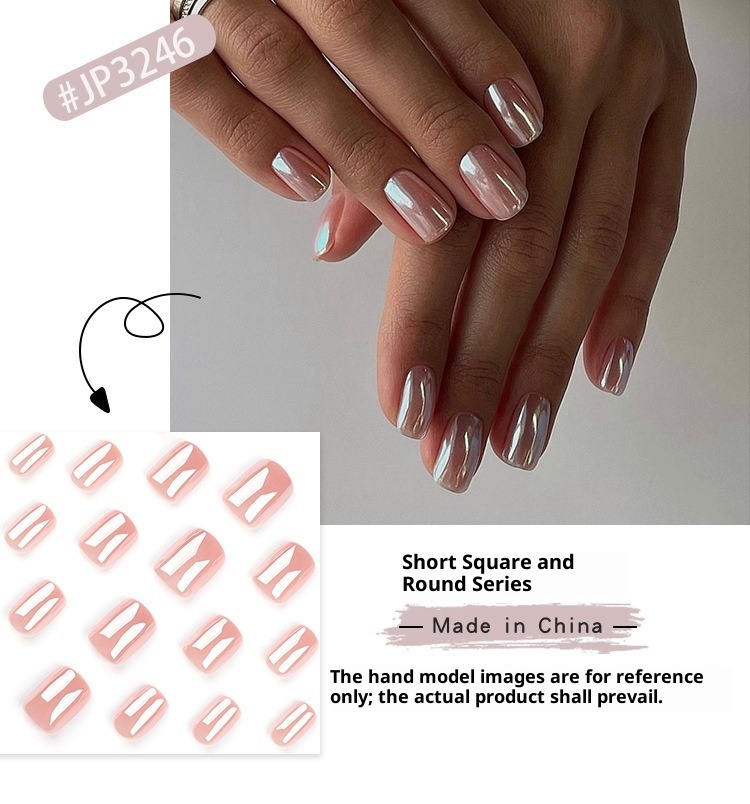 2024 new pink solid color manicure short square wearing nail piece wholesale Internet celebrity explosion coated fake nails