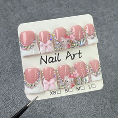 sweet bow cute KT cat Duckbill Shape nail ice through French flash Handmade Press-on Nails fake nails|365nails