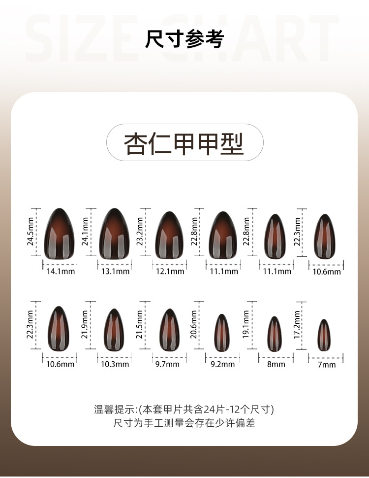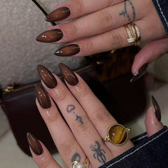 Fall and winter hot-selling black brown smudged wearable nails nail pieces manicure nail pieces almond nails