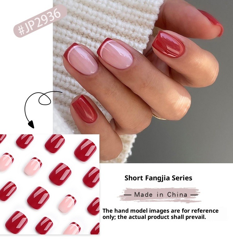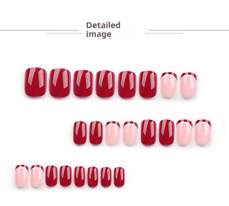 Yiwu nail art wearing nail piece solid color burgundy nail art fake nail short wearable nail sticker wholesale