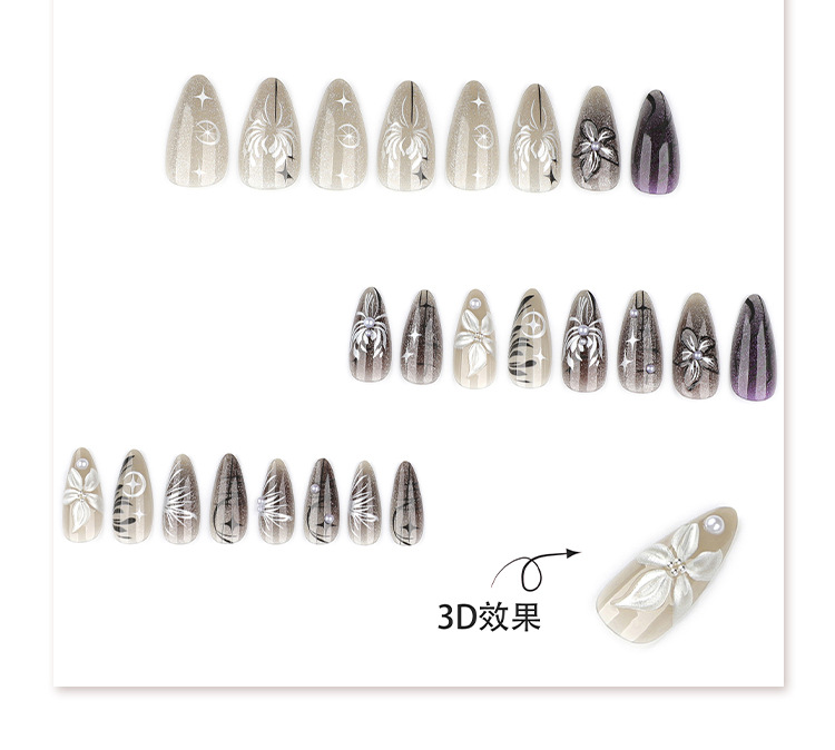 Black smudged y2 cool wearable cat eye 3d stereo flower manicure nail pieces