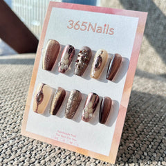 The Gilded Serpent: "Bronze Wasteland" – Metallic Rose Gold & Brown Steampunk Handmade Press-On Nails with Vintage Gem