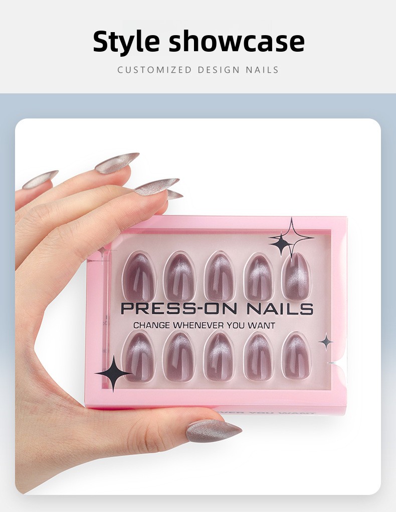 Simple French cat eye manicure fake nails advanced sense transparent gray almond type wearing nail fake nails wholesale