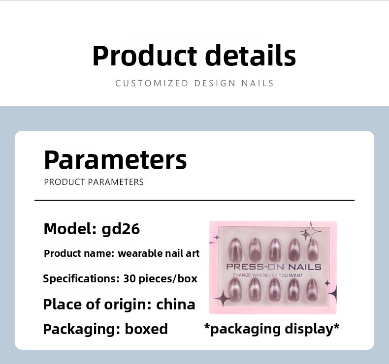 2. Machine-applied nails include the nail tips and outer packaging bag.