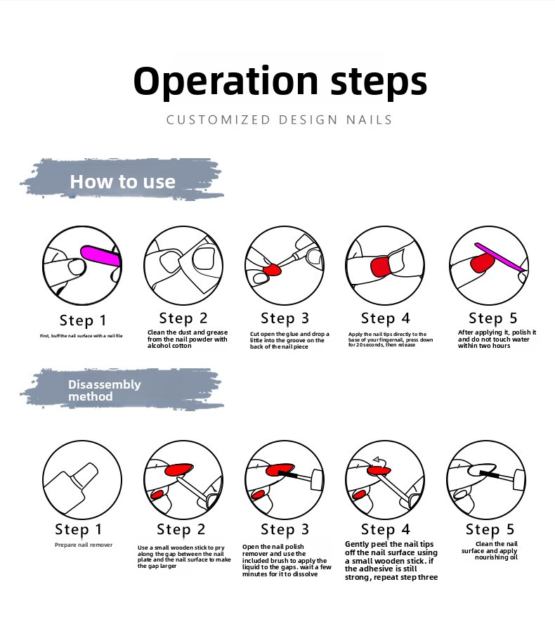 Handmade press-on nails start at 30 sets; machine-made start at 1,000 sets—ideal for small quick runs or scalable supply. - 1‑on‑1 Professional Support: