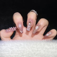 Nude Pink Christmas Press‑On Nails – Snowflake & Star Pearl Design