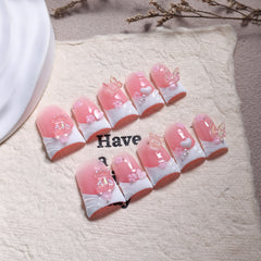Pink Jelly French Nails with Bear and Butterfly Accents