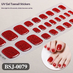 Semi-Cured Gel Nail Strips Toe Nails Pure Color Glitter Sparkle Set (MOQ=3)