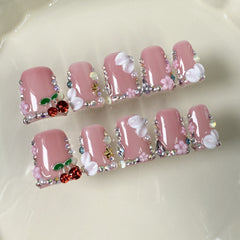 Duck bill nail three-dimensional carving gentle cherry powder sweet handmade press-on nails flash ice through fake nails|365nails