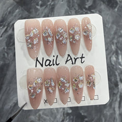 Handmade press-on nails pure desire ice blush nail flash long nail patch wearable fake nail wholesale|365nails