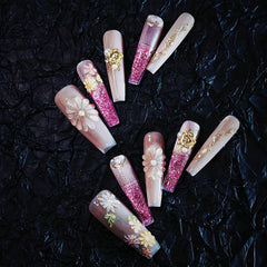 Title Blushing Sakura Glow | Pink-Gold Floral Art Series Press-On Nails