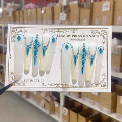 Icy Blue Crystal Drip Elegant Press On Nails