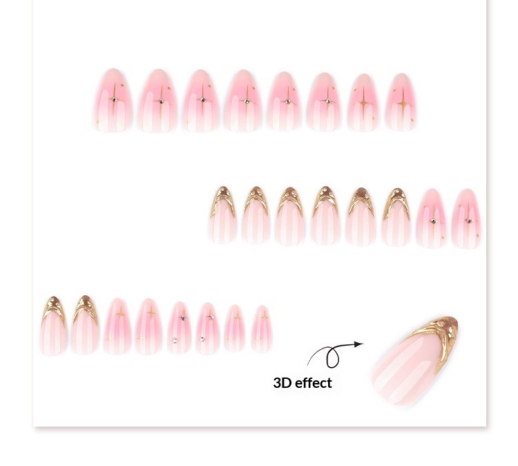 Pink Gold Wave Charm Press On Nails Elegant Design