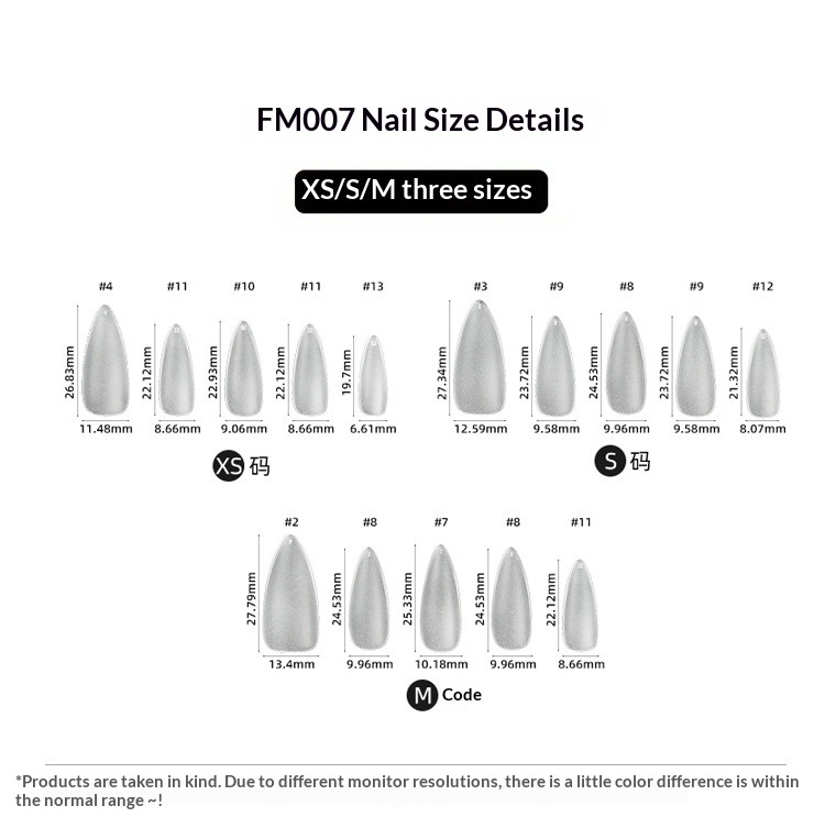 2. Machine-applied nails include the nail tips and outer packaging bag.