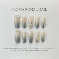 handmade press on nails Psychedelic Empress Dowager Silver White Silver Flash Spice Girl Nail Art Long Tip Nail Type | 365nails