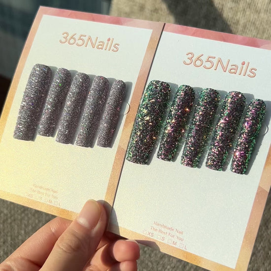 Aurora Neon Glitter Press On Nails|Black Base Colorful Sparkle Square | Starry Glitter · Sparkling Series