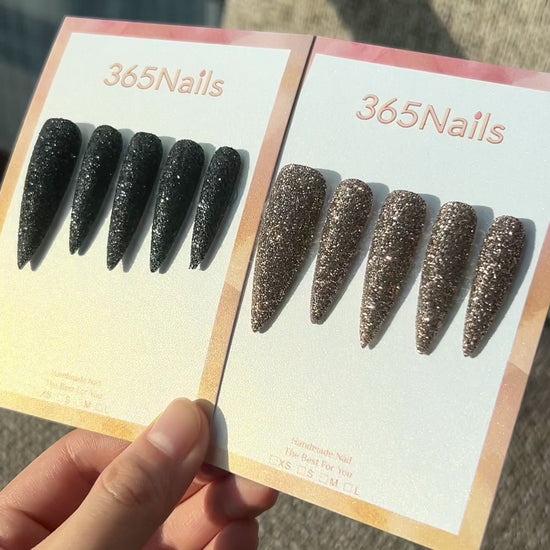 Twilight Dune Press On Nails Cool Brown Shimmer Stiletto| Starry Glitter · Sparkling Series