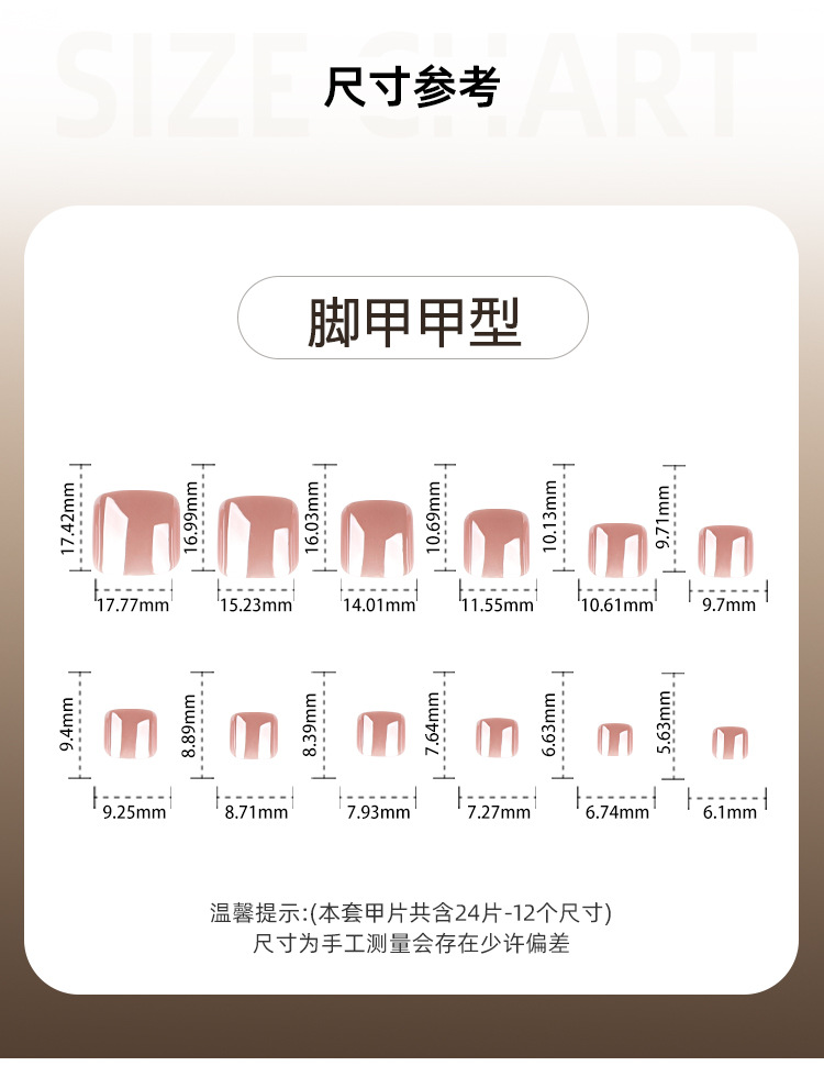 2. Machine-applied nails include the nail tips and outer packaging bag.