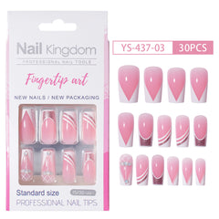 Press on nails Advanced Sense French White Powder with Drill Finished Wearable Nail Removable Prefabricated Patch Nail Art