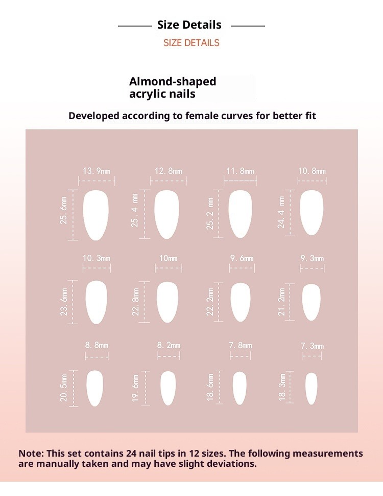 - Description: Each box usually contains 24 or 30 tips, covering a full range of sizes from thumb to pinky. These sets are designed to fit almost any nail shape and size.