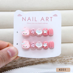 Uñas infantiles tiernas y juguetonas con diseño de conejo rosa, flores y estrellas de amor | 365nails