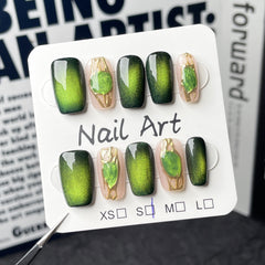 Uñas postizas hechas a mano con diseño de ojo de gato de jaspe, parche corto, estilo Spice Girl, uñas postizas geniales | 365nails