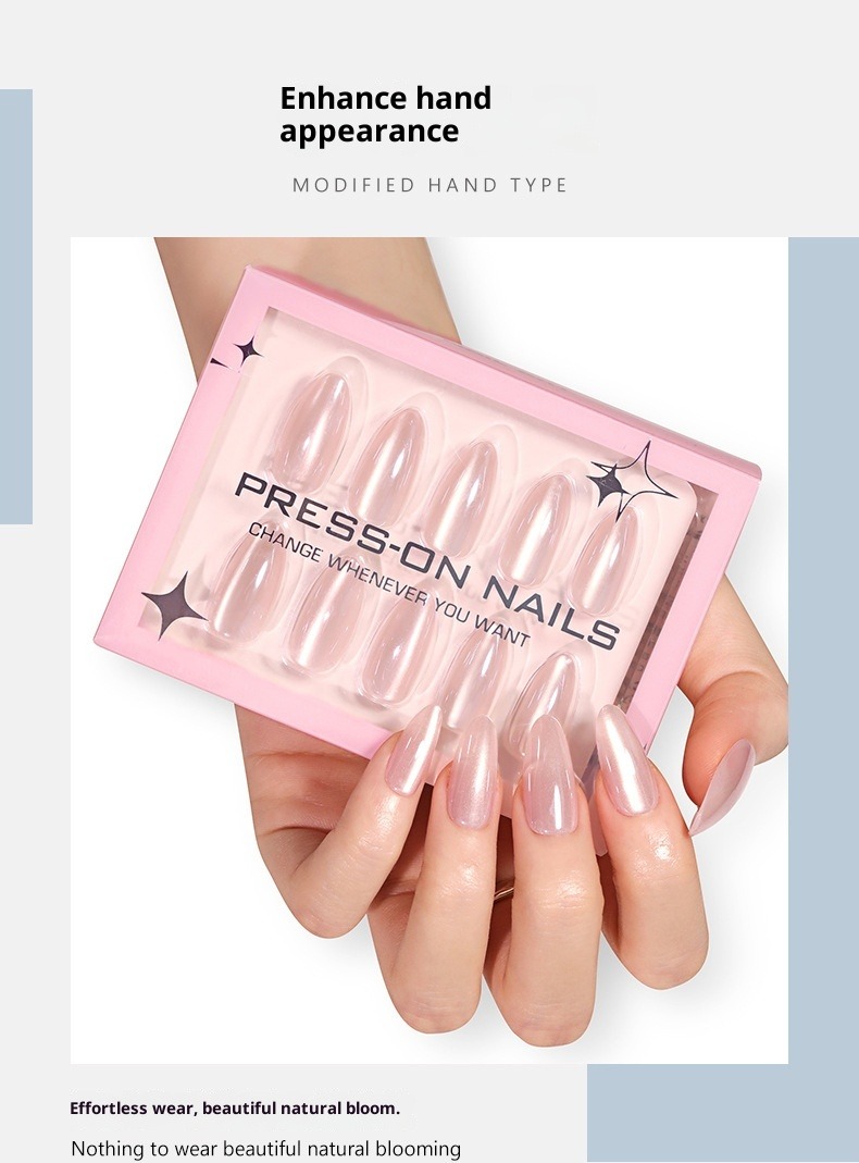 Simple cat eye almond manicure fake nails European and American cross-border short nail film Hailey style advanced sense wearing nail