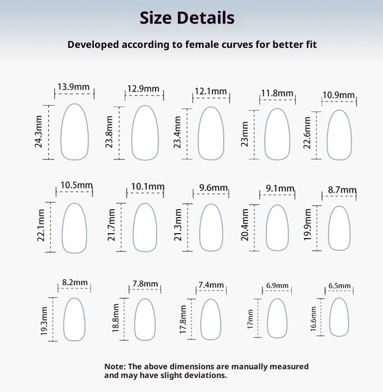 - Description: Each box usually contains 24 or 30 tips, covering a full range of sizes from thumb to pinky. These sets are designed to fit almost any nail shape and size.