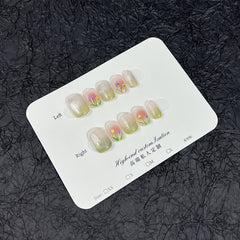 Uñas postizas de tulipán pintadas a mano, pequeñas y frescas, de edición limitada de primavera, con diseño de ojo de gato, uñas postizas hechas a mano, uñas extraíbles al por mayor | 365nails