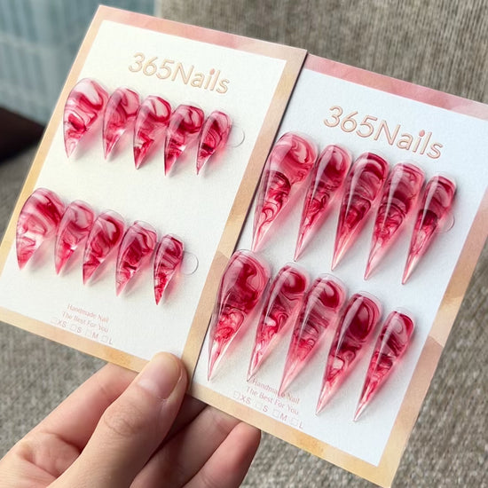 Cranberry Swirl Dragon Claw Stiletto Clear Jelly Red Marble|365Nails Premium Handmade Dragon Nail