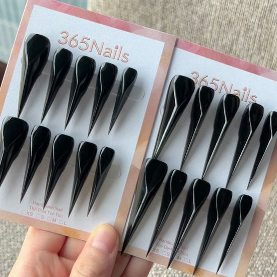 Glossy Midnight Dragon Claw Stiletto Press On Nails|Mirror Jet Black|365Nails Premium Handmade Dragon Series