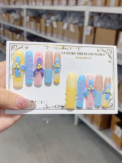 Handmade press-on nails start at 30 sets; machine-made start at 1,000 sets—ideal for small quick runs or scalable supply.