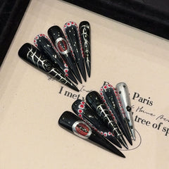 Uñas premium dulces y geniales con diseño de ángel de metal, ojo de diablo, con personalidad, punta extra larga y oscura | 365nails