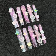 Uñas postizas estilo pipa de agua súper largas, hechas a mano, de acuarela, estilo Spice Girl, venta al por mayor | 365nails