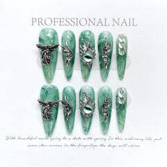 Uñas postizas hechas a mano con alas líquidas, diseño de ojo de ángel, uñas postizas largas | 365nails