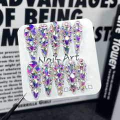 Uñas postizas hechas a mano Flash K9 Aurora AB Symphony, parche de punta larga con diamante completo, adhesivo para uñas portátil | 365nails