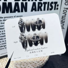 Uñas postizas hechas a mano Emperatriz Dowager Fengxi, corazón torcido, uñas medianas y largas, parche de arte, colgante de lava, pegatina para uñas usable|365nails