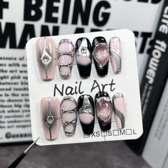 Uñas postizas hechas a mano, diseño de Spice Girl, estilo ojo de gato, diseño de uñas medianas y largas, con parches, para uso industrial, pintadas a mano, para llevar |365nails
