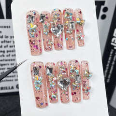 Puntas de agua medianas y largas, arte de uñas, destello transparente IC lleno de diamantes, hecho a mano, pegatinas|365nails