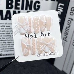 Parche de uñas dulce y lindo hecho a mano con hielo a través de uñas francesas medianas y largas, pegatinas para uñas postizas hechas a mano al por mayor | 365nails