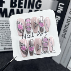 Uñas postizas de metal Spice Girl, hechas a mano, con aerógrafo, rubor, estilo ojo de gato, uñas medianas y largas | 365nails