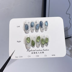 Uñas postizas hechas a mano, de lujo, ligeras, de alta calidad, con efecto ojo de gato, con destellos y color contrastante, con diseño de pato mandarín | 365nails