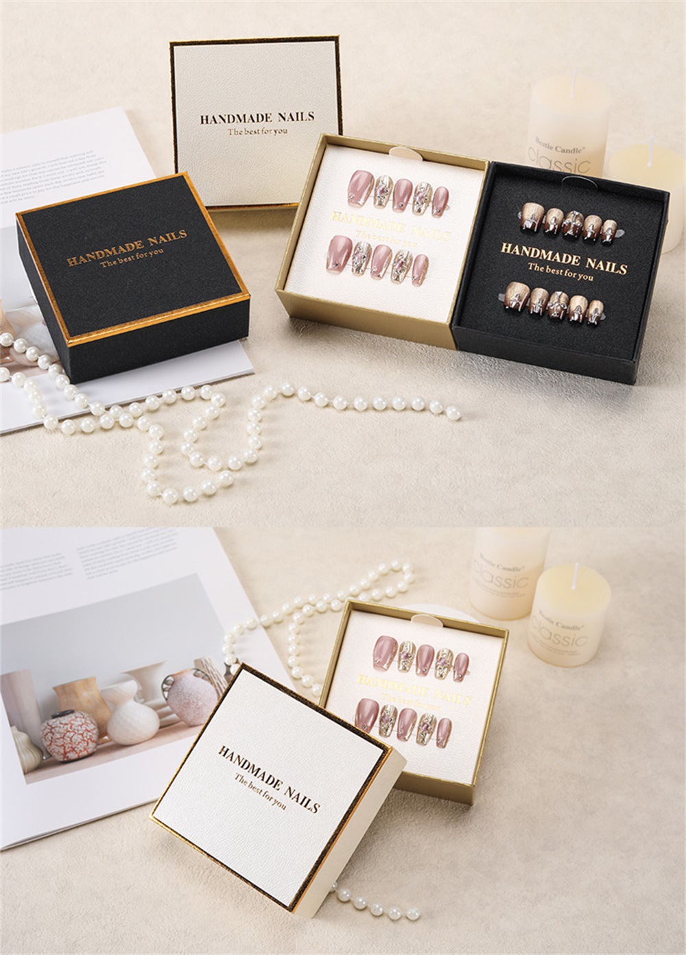 Press-On Nails Gift Box Packaging | HANDMADE NAILS Premium Box | Multi-Color & Custom Logo Available(MOQ=10PCS)