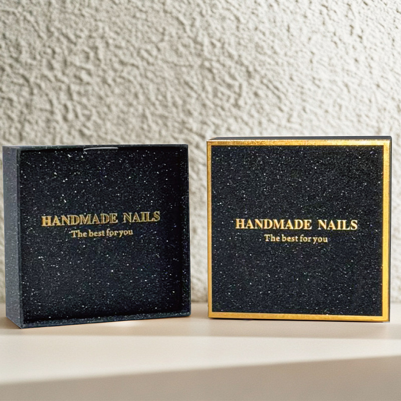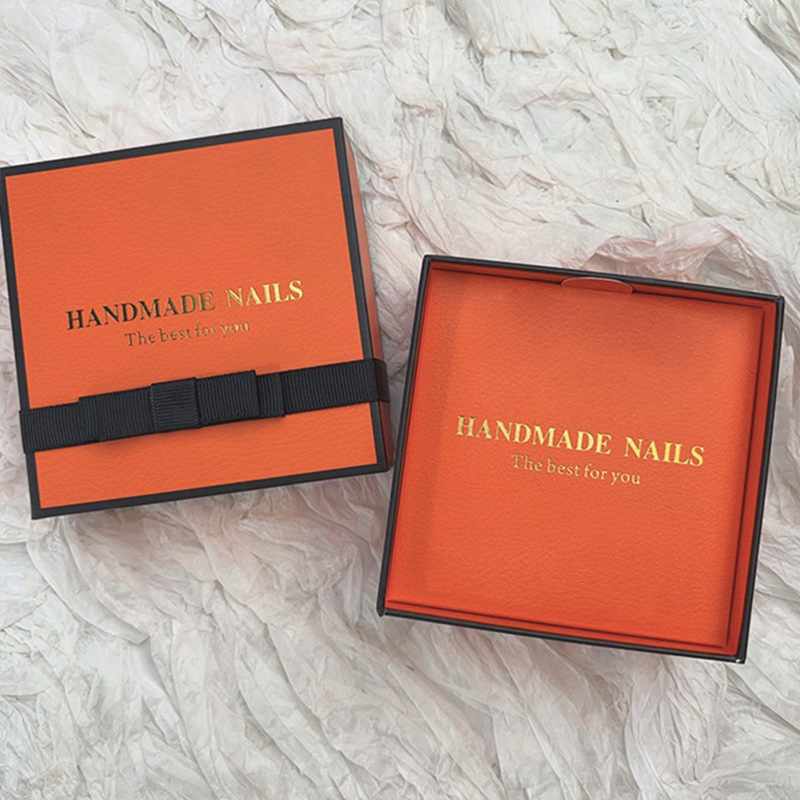 高级天地盖穿戴甲包装盒高档烫金穿戴甲精致礼袋礼盒现货定制
