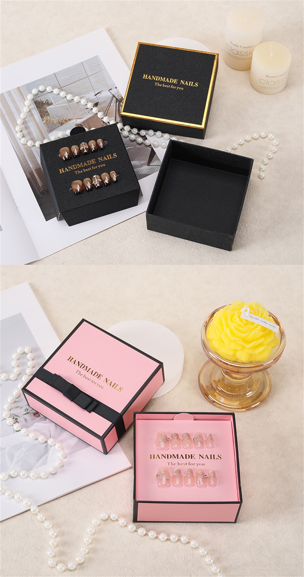 This premium gift box packaging is designed specially for press-on nails / nail tips.