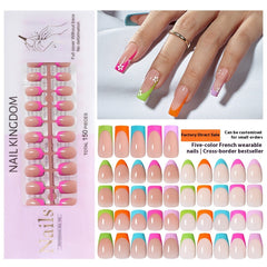 Nail Tips French press on nails explosion five-color rectangular versatile removable patch manicure 150 pieces fake nail piece