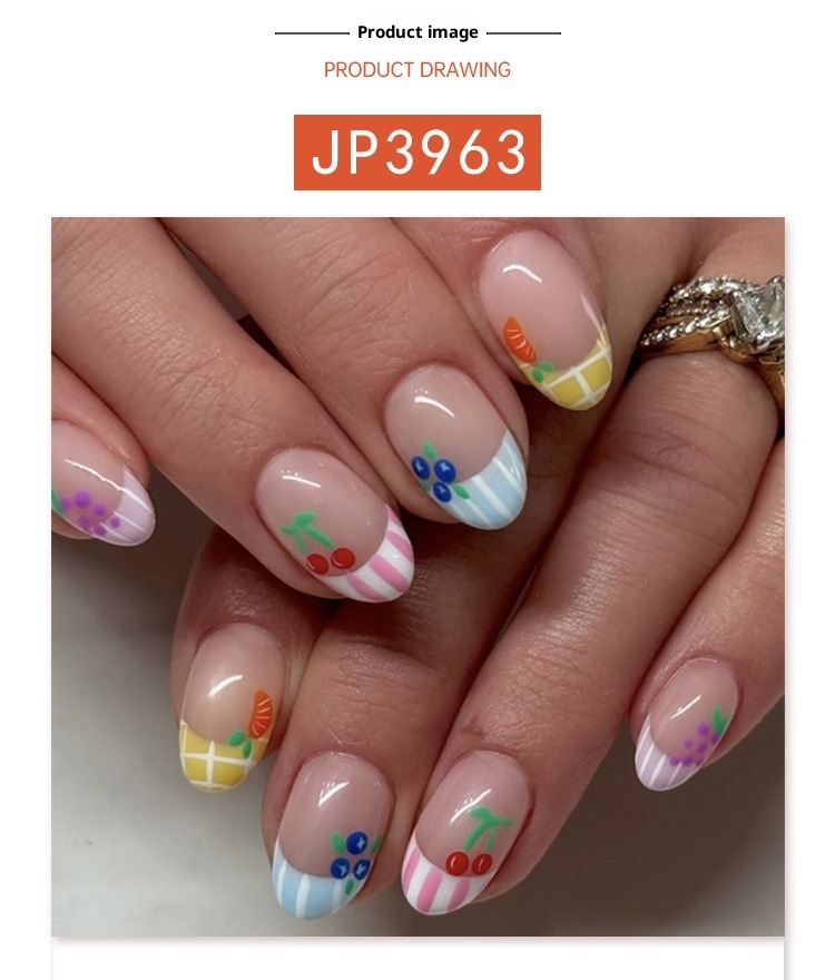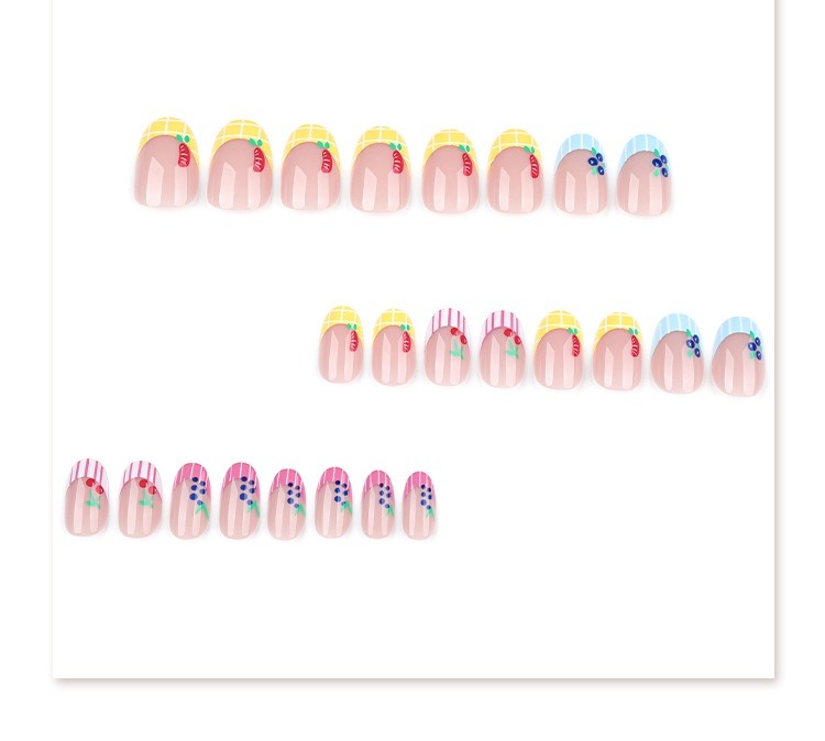 Cute and fresh cartoon fruit wearing nail short round short manicure nail piece French wearing nail piece wholesale