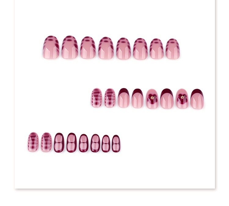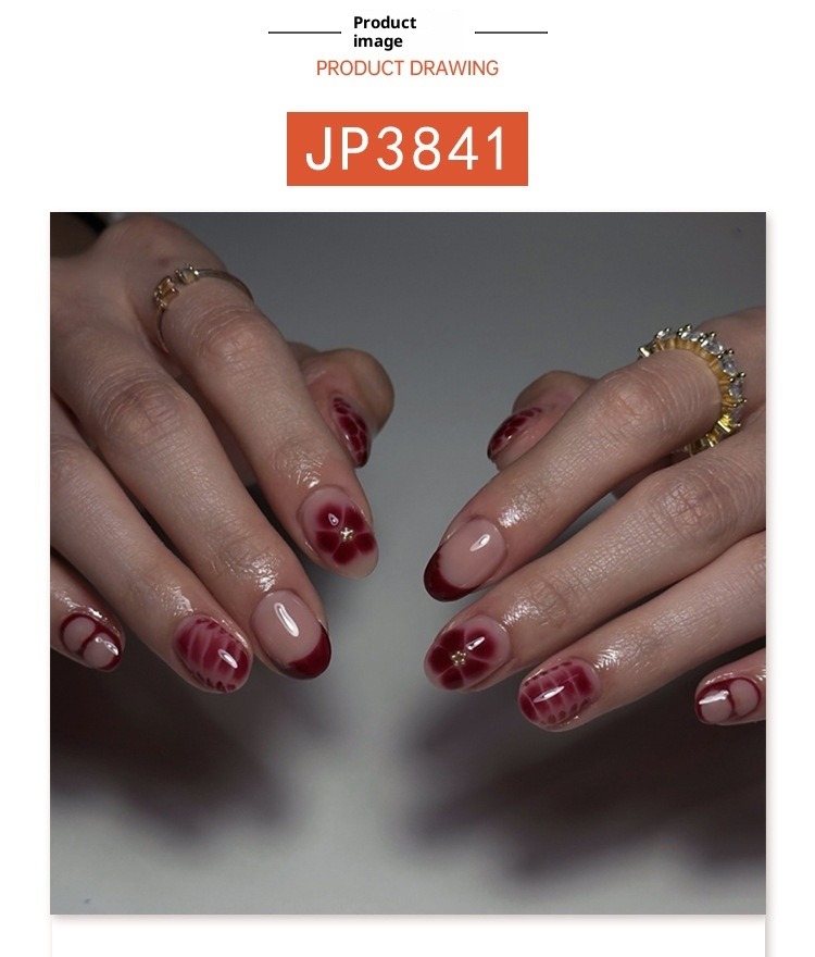 Foreign trade cross-border wearing nail French red manicure nail piece short round wearing nail piece petal fake nail wholesale
