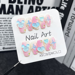 Uñas postizas hechas a mano con efecto degradado en color rosa hielo, parches cortos, pegatinas para uñas lindas y fáciles de usar, venta al por mayor | 365nails