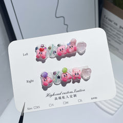 Uñas postizas hechas a mano con diseño de Kirby, diseño de dibujos animados, para uñas cortas, con parche terminado, pegatinas para uñas, para usar | 365nails